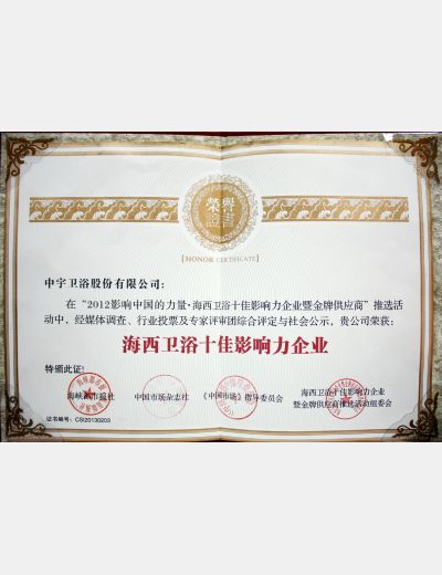 海西衛(wèi)浴十佳影響力企業(yè)