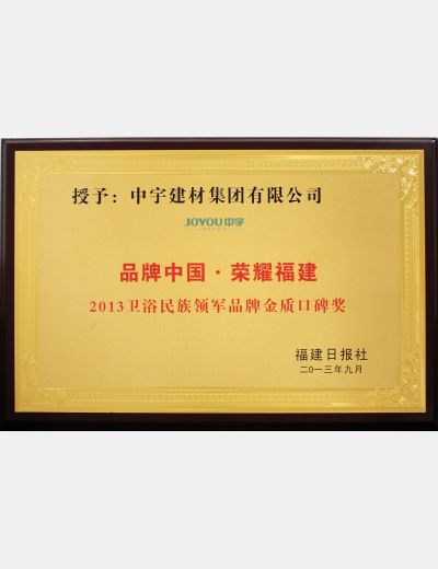 2013衛(wèi)浴民族領(lǐng)軍品牌金質(zhì)口碑獎(jiǎng)