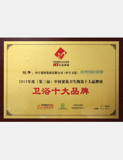 衛(wèi)浴十大品牌--2013年度(第三屆)中國建筑衛(wèi)生陶瓷十大品牌