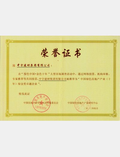 中國綠色房地產(chǎn)產(chǎn)業(yè)(十年)綠金獎(jiǎng)卓越企業(yè)